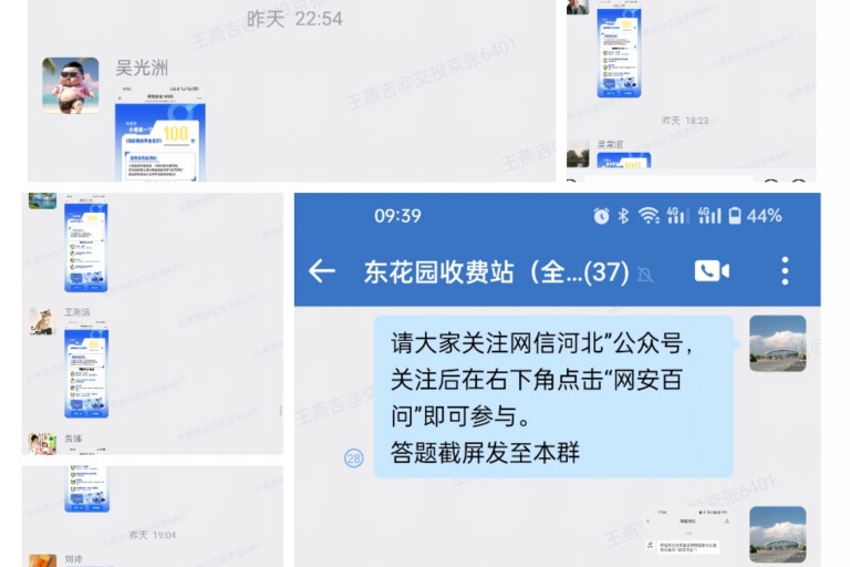 一是广泛宣传深入人心。收费站充分利用内部宣传阵地,在企业微信群开设“网络安全小课堂”,每日定时推送图文并茂的宣传海报和短视频。内容涵盖日常工作生活中常见的网络风险,如钓鱼邮件识别、公共wifi使用隐患、手机app权限管理等,让广大职工在工作间隙就能轻松学习实用知识。二是对外宣传答疑解惑。宣传人员在收费广场向过往司机发放《网络安全手册》20余份,现场讲解“扫码领礼品”“中奖链接”等常见诈骗套路的识别技巧,提醒大家不随意透露银行卡信息、不点击不明链接,帮助司乘提升网络风险防范意识。三是参与答题丰富安全知识。收费站组织全体职工参与省委网信办发起的“网络安全100问”线上答题活动。答题内容聚焦密码设置规范、病毒查杀方法、个人信息维权途径等实用技能,职工们利用业余时间积极参与,平均得分达90分以上。通过答题,大家不仅巩固了网络安全知识,更掌握了应对常见网络问题的实操方法,比如如何给重要文件加密、遭遇信息泄露后如何留存证据等。
