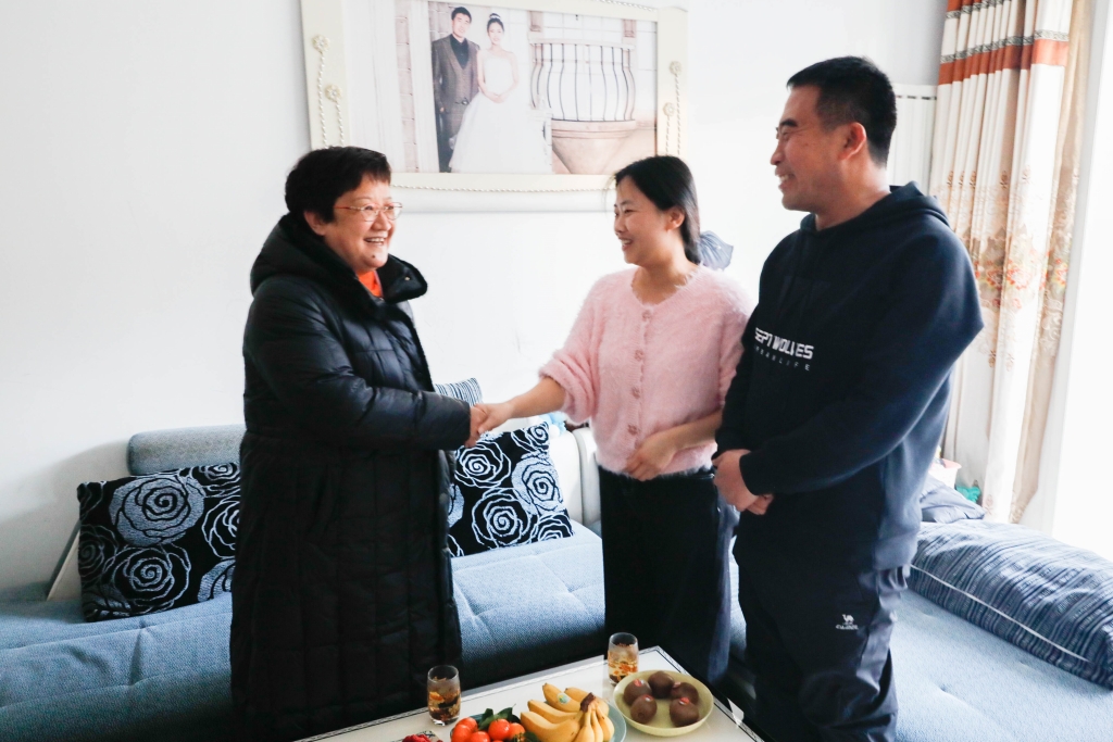 在慰问现场,朱丽杰与驻村队员唐建飞及家属亲切交谈,充分肯定了驻村工作取得的成绩,详细询问了家庭情况及工作、生活中遇到的问题和困难,对默默支持驻村工作、撑起家庭“半边天”的家属表示感谢。