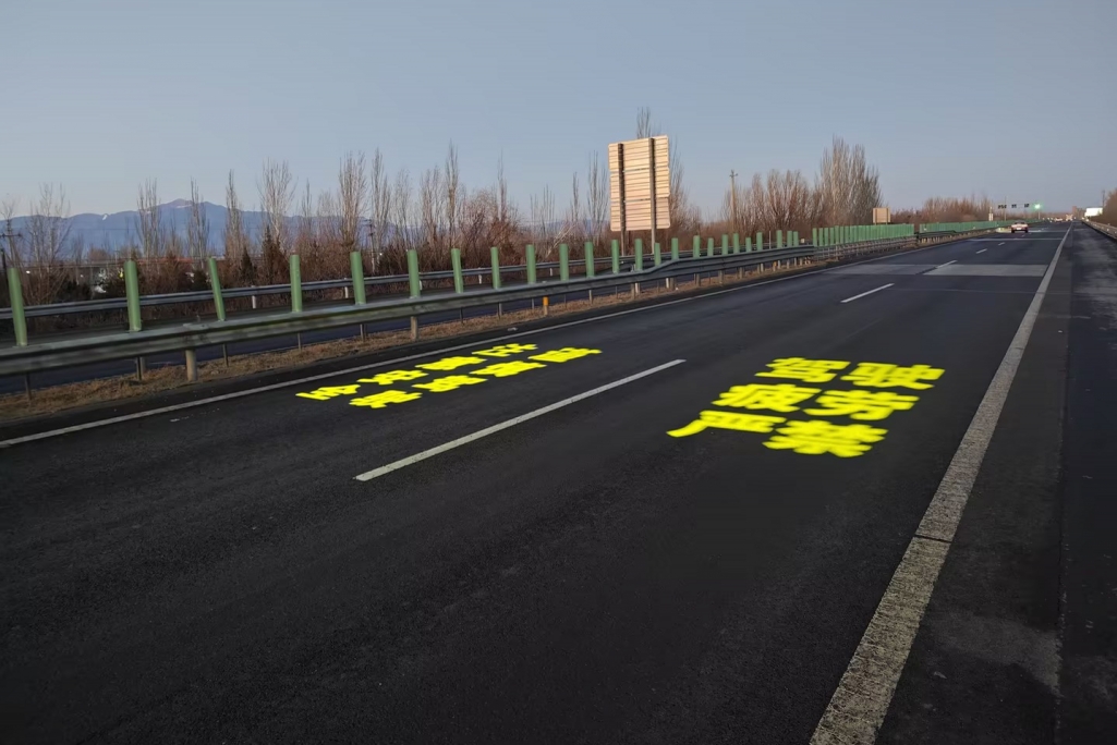 近日,京张高速省界进京方向拥堵断正式投入使用新型安全警示投影灯,通过科技手段有效提升夜间及恶劣天气条件下的道路安全水平,进一步降低事故风险,为过往车辆提供更可靠的行车保障。